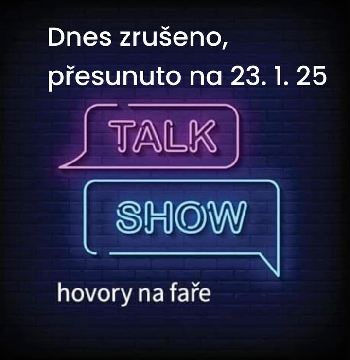 Dnes jsem měla byt hostem talkshow Honzy Sirovátky. Z důvodu nemoci přesouváme na leden. Přijďte 23. 1. 2025 v 19:00 na faru.