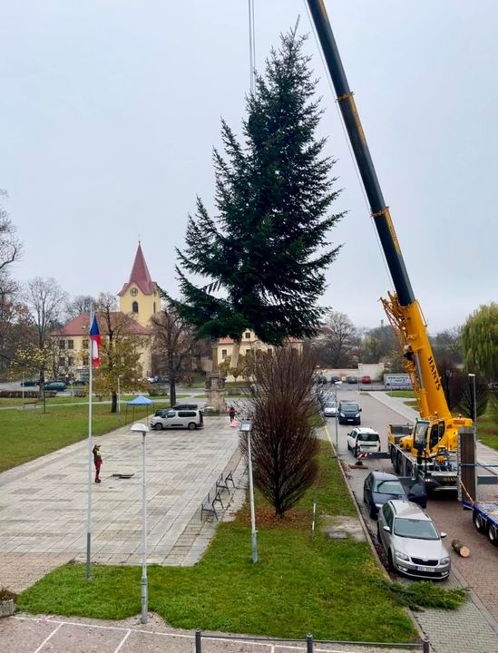 Adventní čas se blíží, na náměstí vyrostlo stromisko. Letošní vánoční strom ze zahrady manželů Koválikových je jeden z nějvětších, který kdy náměstí zdobil 🌲