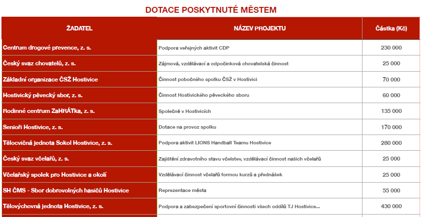 dotace spolkům a neziskovým organizacím, které ve městě působí.