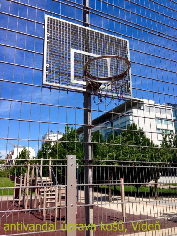 Naše řešení: 1) Instalovat kameru s napojením na městskou policii, 2) opravit basketbalové koše, přičemž zvážit možnost instalace košů z masivnějšího kovu, aby nedocházelo k jejich ničení, 3) instalovat menší branky (velikost cca hokejových branek) a jejich ukotvení pod basketbalové koše, aby nemohly být zcizeny a zároveň nemohly na nikoho spadnout, 4) předělat oplocení na pevnější síť nebo na klecové, 5) odstranit zákaz hraní fotbalu a změnit ho, s ohledem na povrch hřiště, na zákaz používaní kopaček s kolíky. Implementace tohoto řešení je možná takřka okamžitě s minimálními náklady.