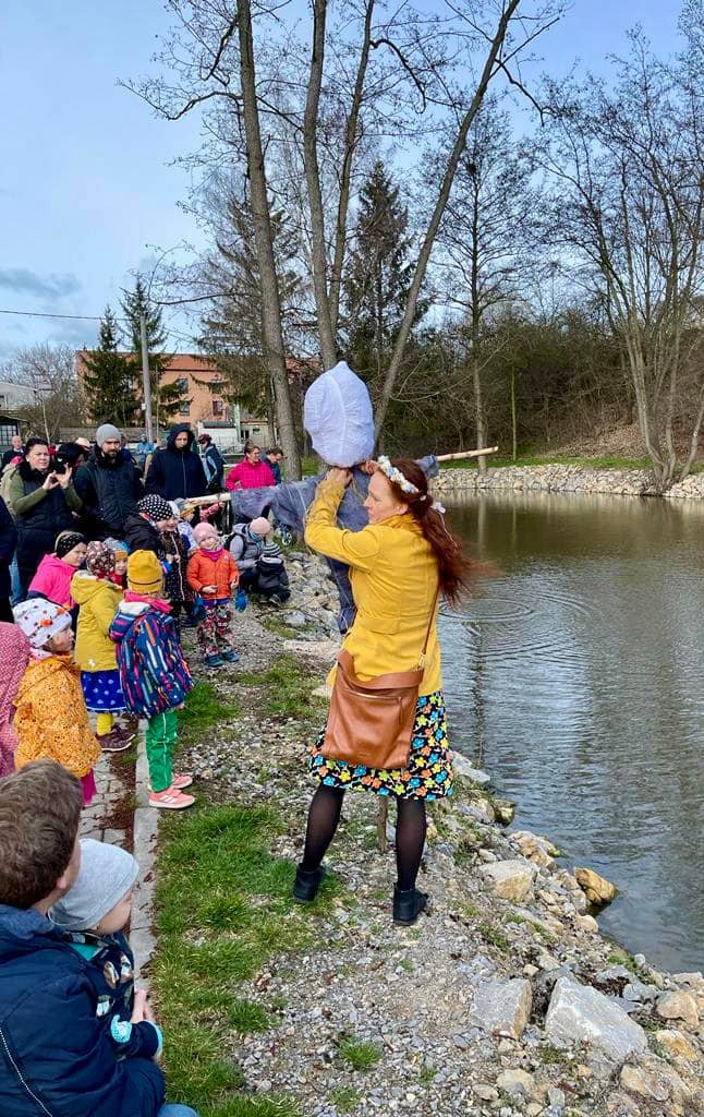Zima by mohla být definitivně pryč. Děti s rodiči a pořadatelkami z mateřského centra ZaHRÁTka vynesli Moranu a hodili ji do rybníčka Ke Skále.