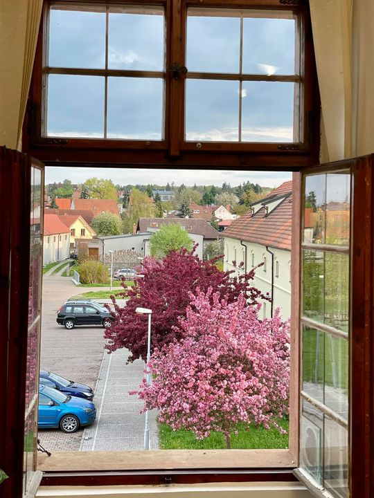 🪟🪟🪟Všimli jste si, že zámek je tu a tam bez oken a postupně se zabedňuje? Probíhá repase oken. Firma postupně odváží okna na dílnu, aby je po 40 letech vyspravila, natřela, dala nové těsnění a vyměnila poškozená skla.