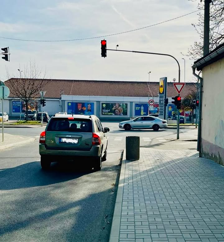 🤔 Proč ale stojí úplně na kraji chodníku, kdy se řidič projíždějícího skoro bojí, že si odře zrcátko svého vozu?