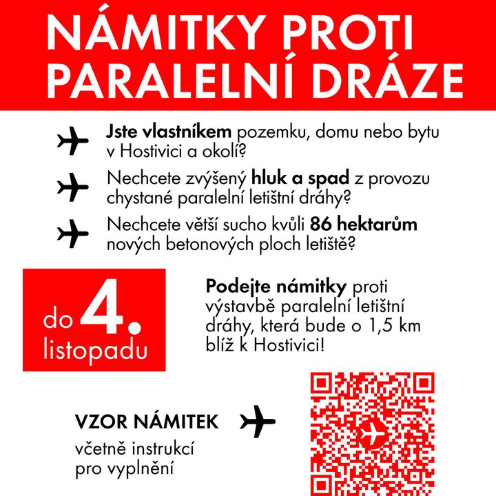 Spolek HOme připravil pro občany, vlastníky nemovitostí v Hostivici, vzor námitky k projektu paralelní dráhy na letišti. Předložená dokumentace neobsahuje skutečné dopady na život v Hostivici, proto sdílíme k použití pro všechny, kteří mají zájem námitku podat.
