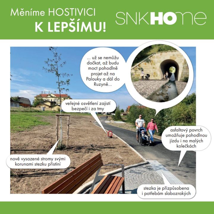 🌳 Když město, tak propojené cestami a plné zeleně. 👉 Zpřístupňujeme a zvelebujeme zanedbaná místa, budujeme průchody, pohodlné chodníky a cyklostezky, propojujeme Hostivici s Prahou a okolím.