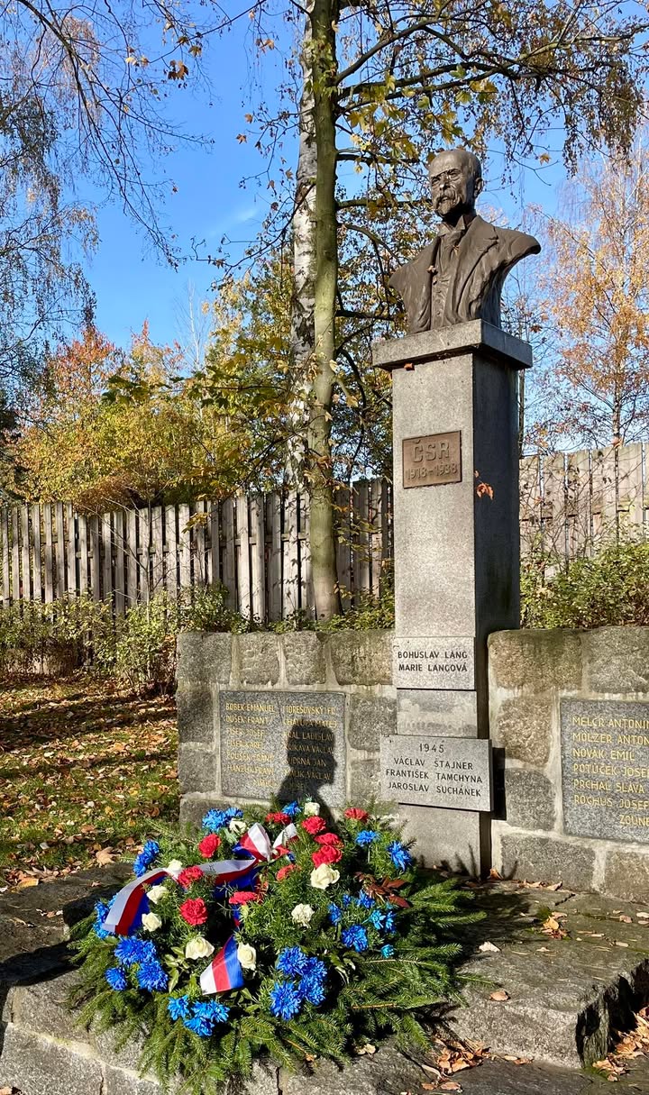 Klára Čápová a Michaela Petránková, v rámci vzpomínkové akce města, společně se studenty a pedagogy našeho gymnázia a základní školy symbolicky ozdobili vlčími máky pomník TGM v parku v Litovicích 🇨🇿