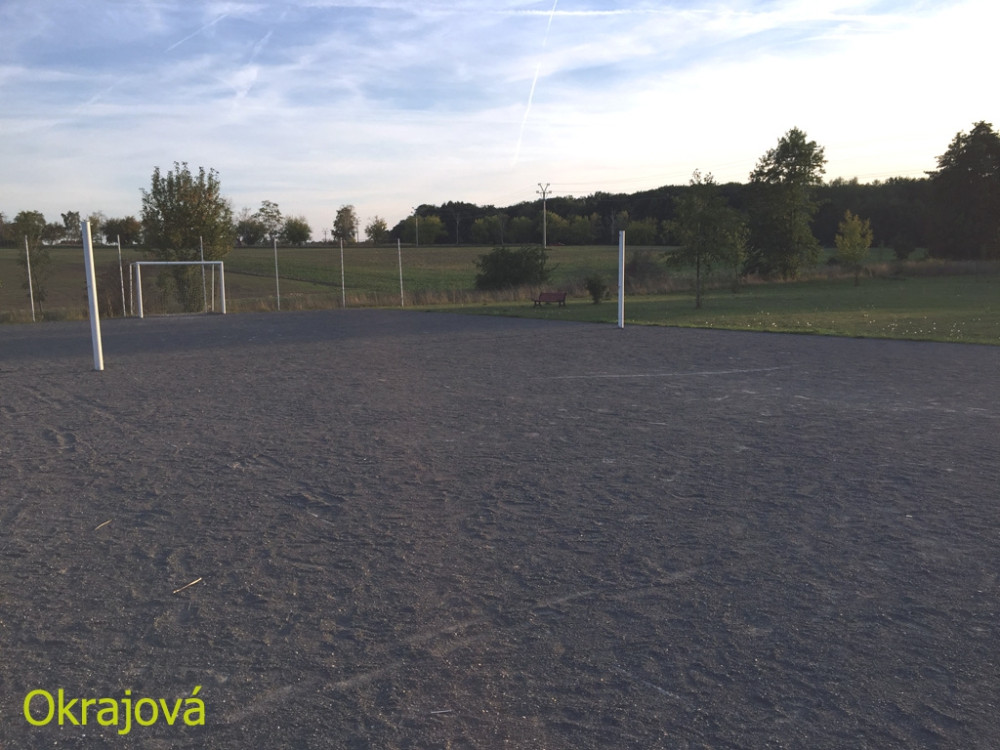 Toto hřiště je momentálně primárně koncipované jako hřiště pro malou kopanou, teoreticky i volejbal (jsou tu instalované sloupky na síť). Reálně je toto hřiště ovšem pro tyto účely zcela nevyhovující, protože 1) povrh je tvořen štěrkem – kdo hrál fotbal na štěrku ví, že to není žádný med, a to především pokud delší dobu nepršelo (vysoká prašnost), 2) po stranách chybí oplocení, tudíž míč neustále utíká a oplocení za brankami je velmi nízké – branku stačí přestřelit jen mírně a už míč letí do pole nebo směrem na rodinné domy (srovnejte například s ochranou sítí na stadionu).